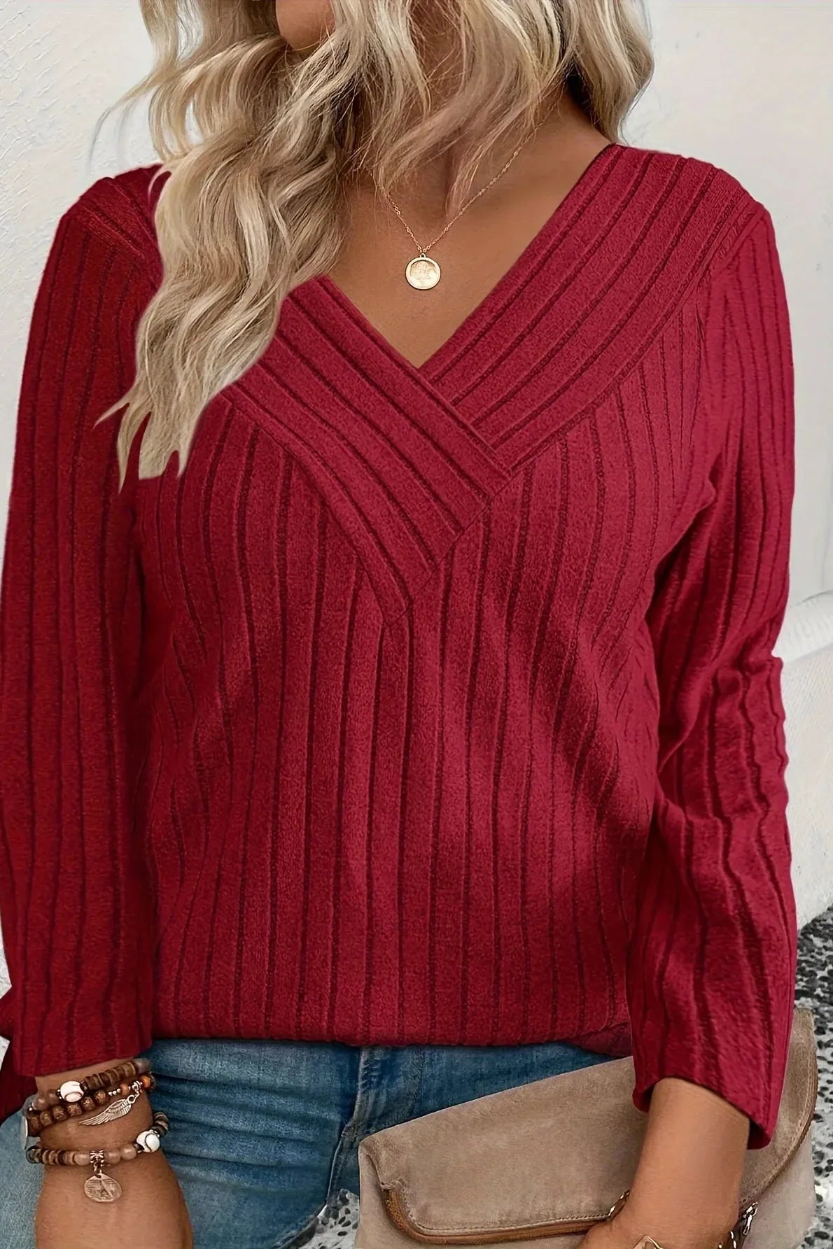 우아한 캐주얼 플러스 사이즈 긴팔은 몸매를 돋보이게 하고, 흐르며, 딱 맞는 느낌을 주도록 만들어졌습니다. 부드러운 리브 니트, 여유로운 핏, 그리고 세심하게 배치된 랩 스타일의 솔기가 일상적인 옷장에 세련된 멋을 더하면서도 편안함을 잃지 않게 합니다. 깊은 V넥라인은 자신감을 높여주는 실루엣을 제공하며, 넉넉한 컷은 곡선을 부드럽게 감싸주어 수월하면서도 우아한 룩을 연출합니다. 이 상의를 독특한 주얼리와 함께 스타일링하든, 청바지와 함께 편안하게 입든, 이 탑은 당신과 함께 움직이며 준비하는 과정을 쉽게 만들어 줍니다.
